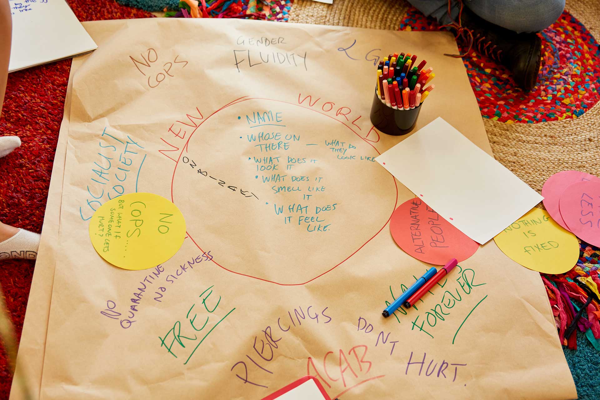 Faced with this question, Fambo responded by pivoting plans of a Fambo Festival 2.0 and instead inviting artists Tony Albert, Ramesh Mario Nithiyendran, Soumia Bella, Nayuka Gorie and Bhenji Ra to create work SLOWLY. Finding new ways to connect with LGBTIQA+ kids and families, Fambo Slo-Mo included the creation of at-home activities, small group workshops and school incursions.